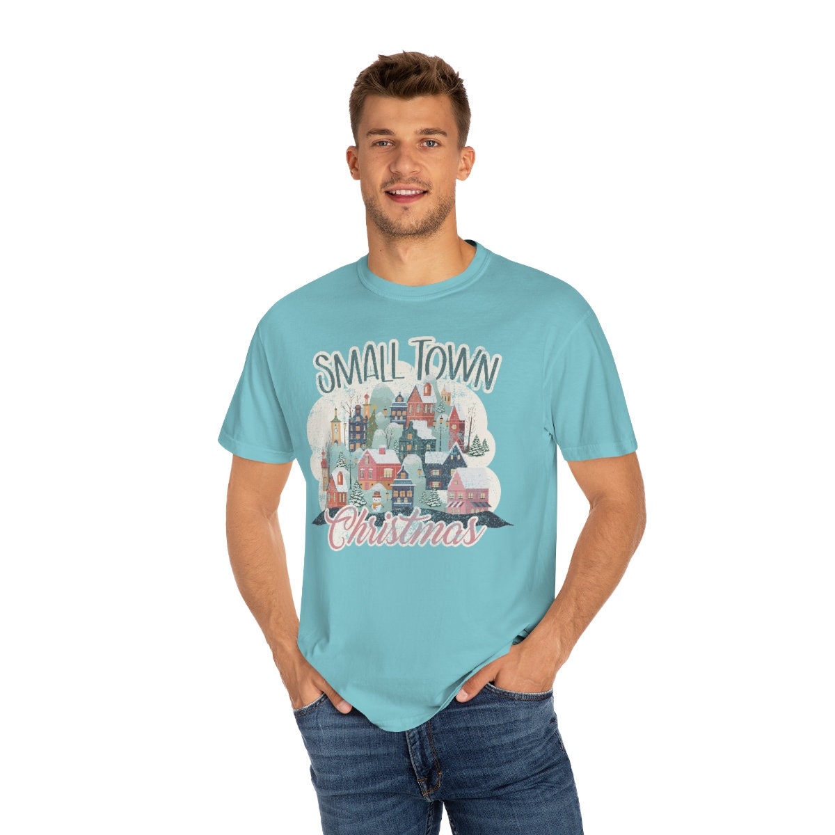 Retro, small town Christmas t-shirt; a fully customizable tee made 100% with ring-spun cotton. The soft-washed, garment-dyed fabric brings extra coziness to your wardrobe while the relaxed fit makes it an excellent daily choice. The double-needle stitching throughout the tee makes it highly durable while the lack of side-seams helps the shirt retain its tubular shape.\n.: 100% ring-spun cotton\n.: Medium fabric (6.1 oz/yd² (206.8 g/m²))\n.: Relaxed fit\n.: Sewn-in twill label