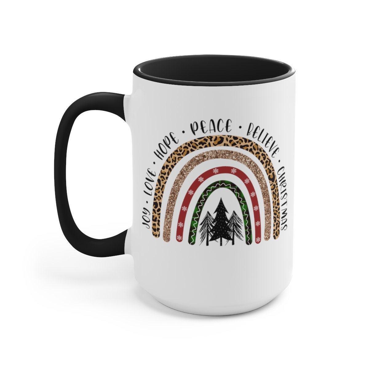 Christmas Rainbow inspirational words Two-Tone Coffee Mugs, 15oz