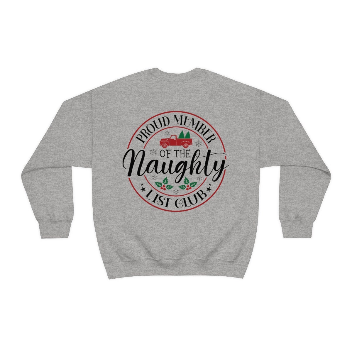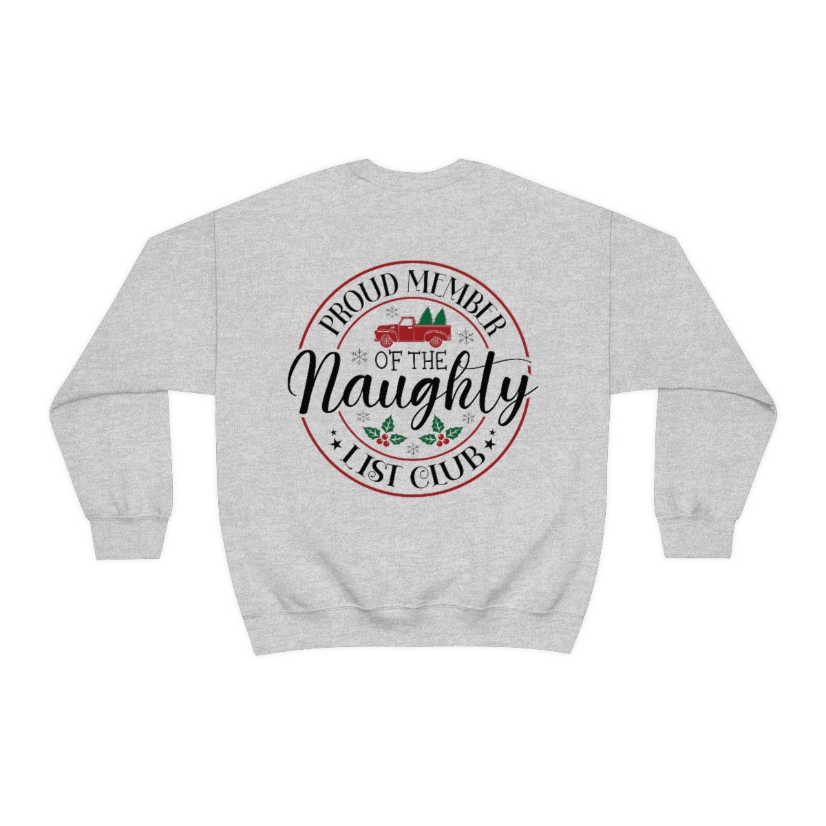 Naughty list club sweatshirt is Ideal for any situation, a unisex heavy blend crewneck sweatshirt is pure comfort. These garments are made from polyester and cotton. This combination helps designs come out looking fresh and beautiful. The collar is ribbed knit, so it retains its shape even after washing. There are no itchy side seams on these sweaters.