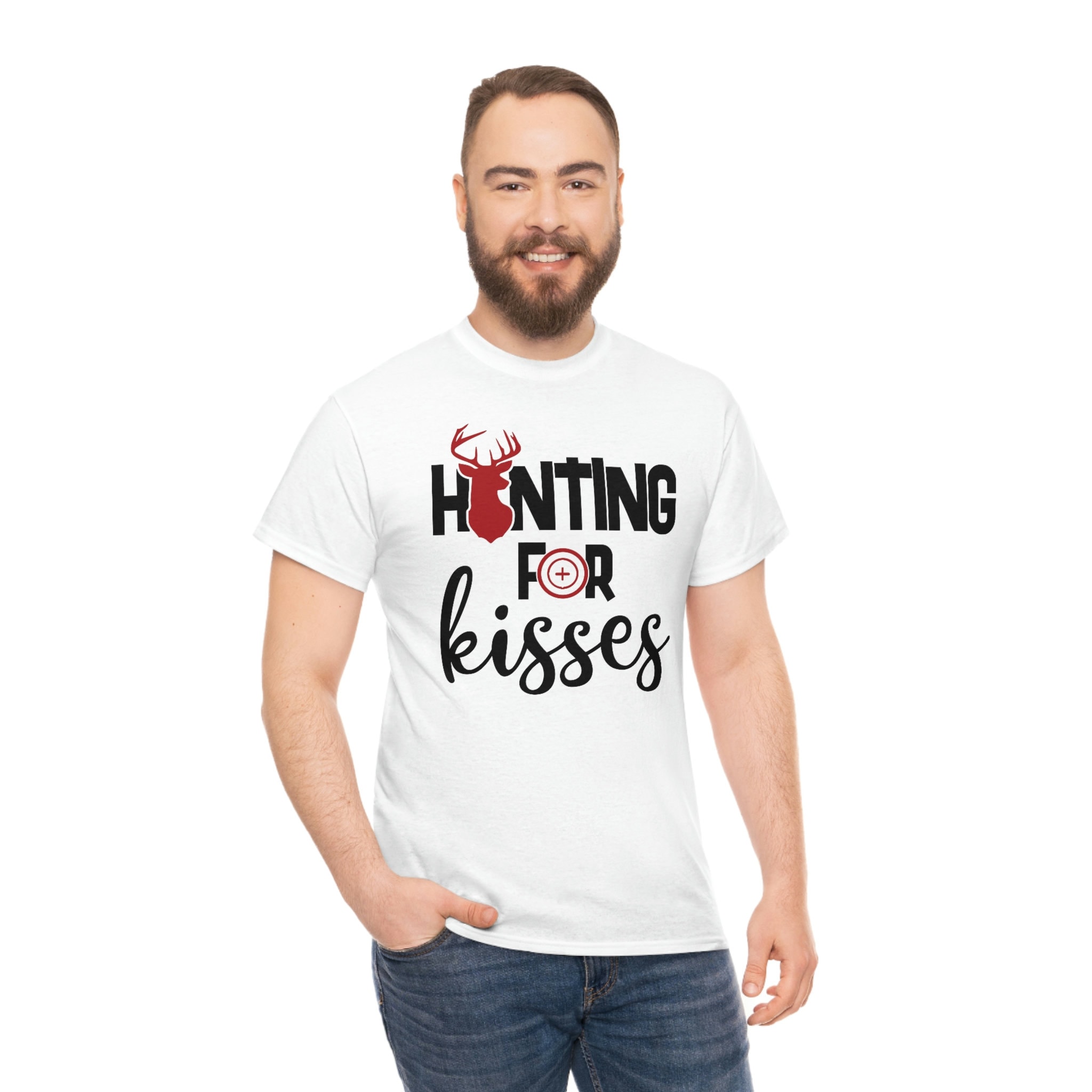 Hunting for Kisses, Hunting for kisses funny shirt, Valentines day Tee, Boy Valentine Tee, Girl Valentine, Unisex Heavy Cotton Tee