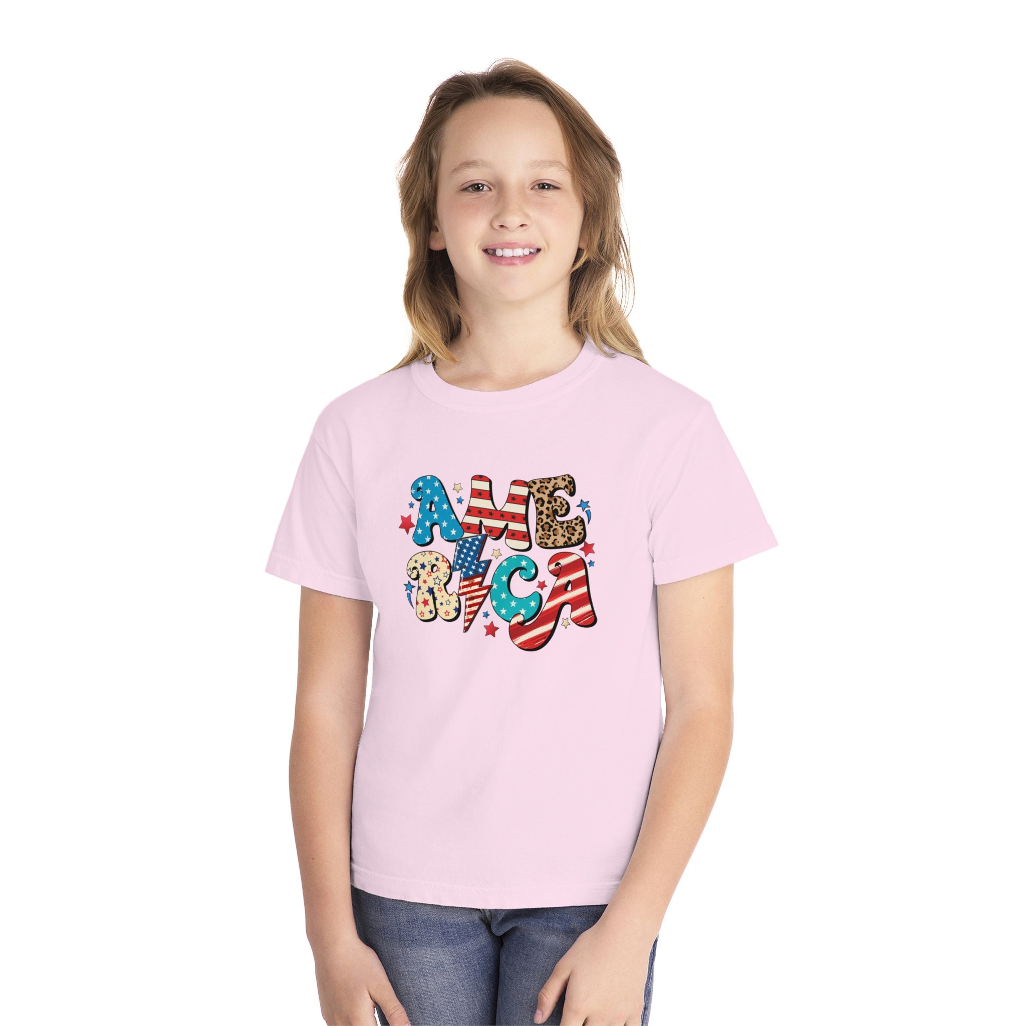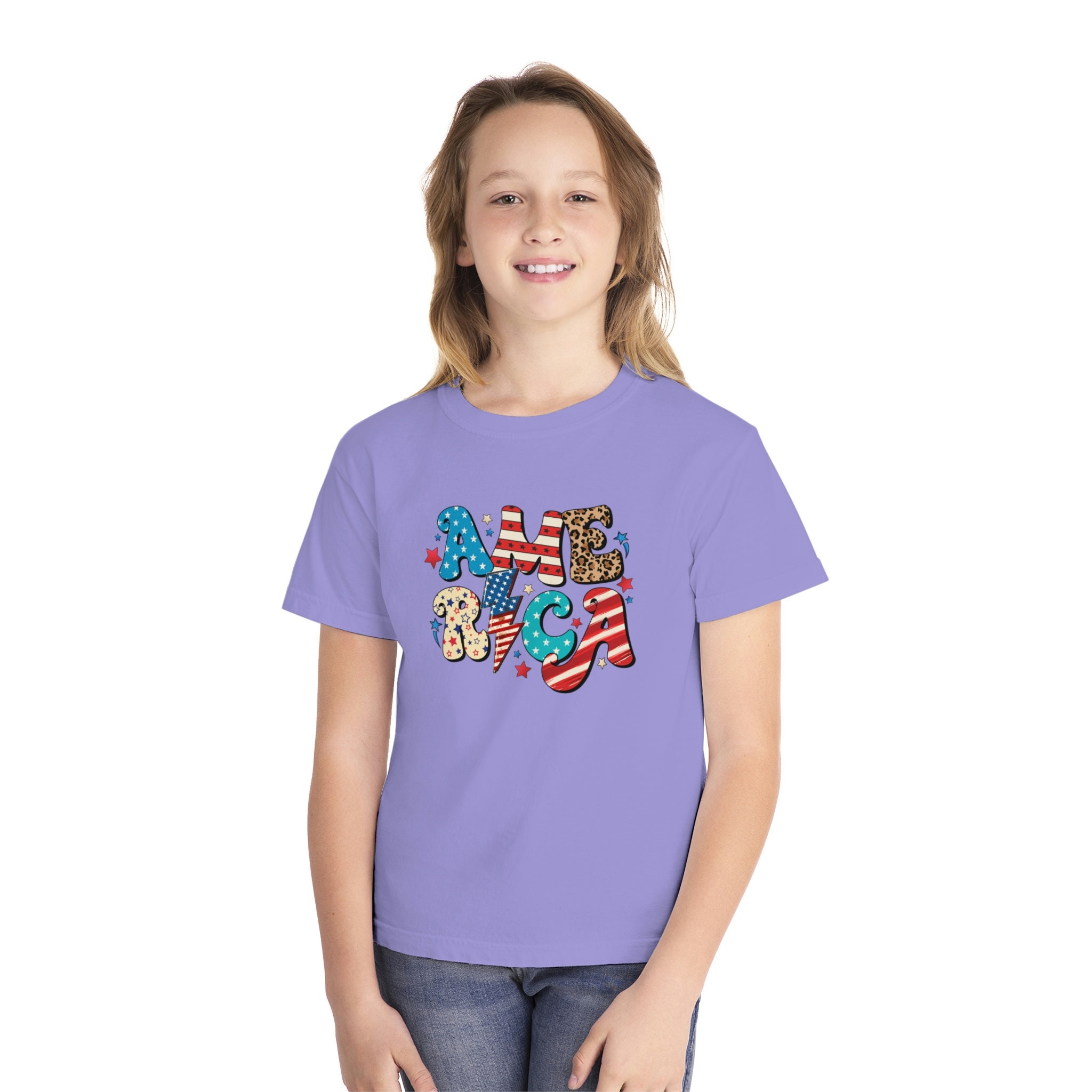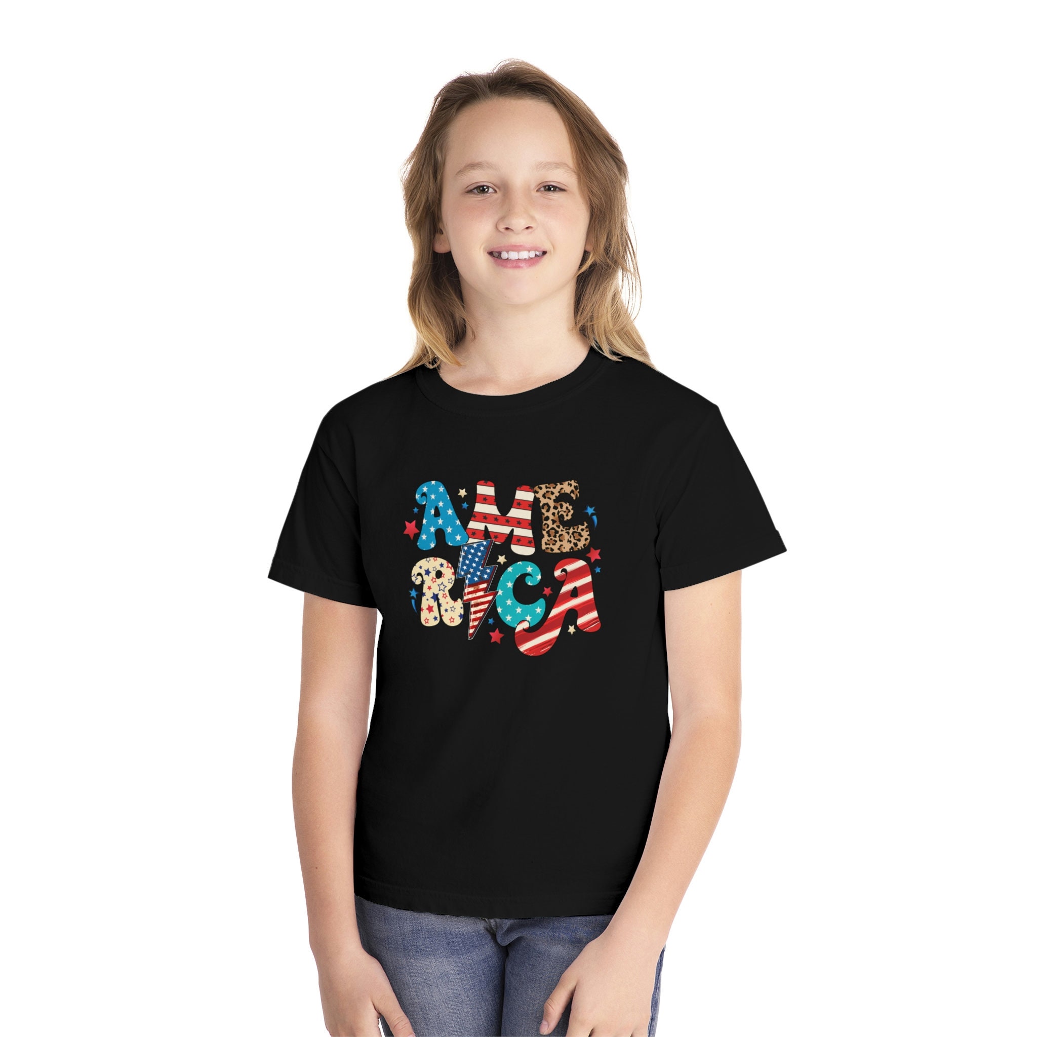 4th of July, Independence Day, Youth Midweight Tee. Created to fit in any kid's active schedule, these kid's tee shirts pack both comfort and agility. Made 100% with combed ring-spun cotton for total comfort whether it's studying or playing time. The fabric is soft-washed and garment-dyed. Meanwhile, the classic fit makes it the perfect choice for day-long wear.
