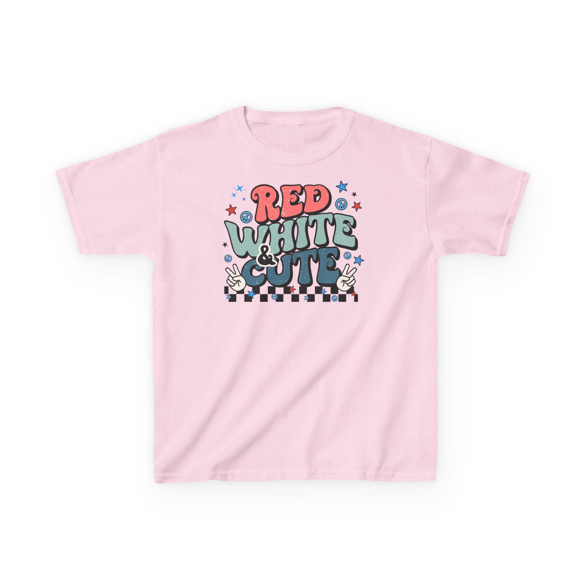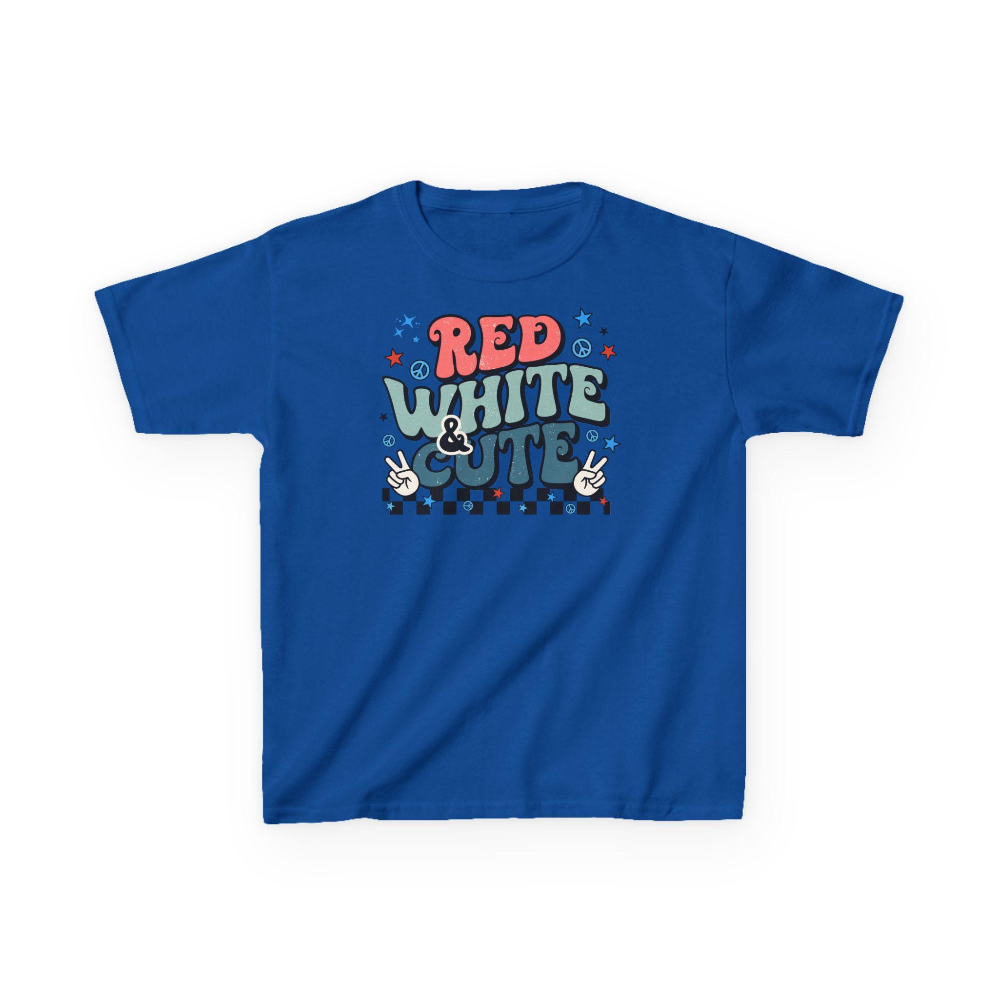 4th of July, Independence Day, Boy of Girl Kids Heavy Cotton Tee. The kids heavy cotton tee is perfect for everyday use. The fabric is 100% cotton for solid colors. Polyester is included for heather-color variants. These fabrics are prime materials for printing. The shoulders have twill tape for improved durability. The collar is curl resistant due to ribbed knitting. There are no seams along the sides.