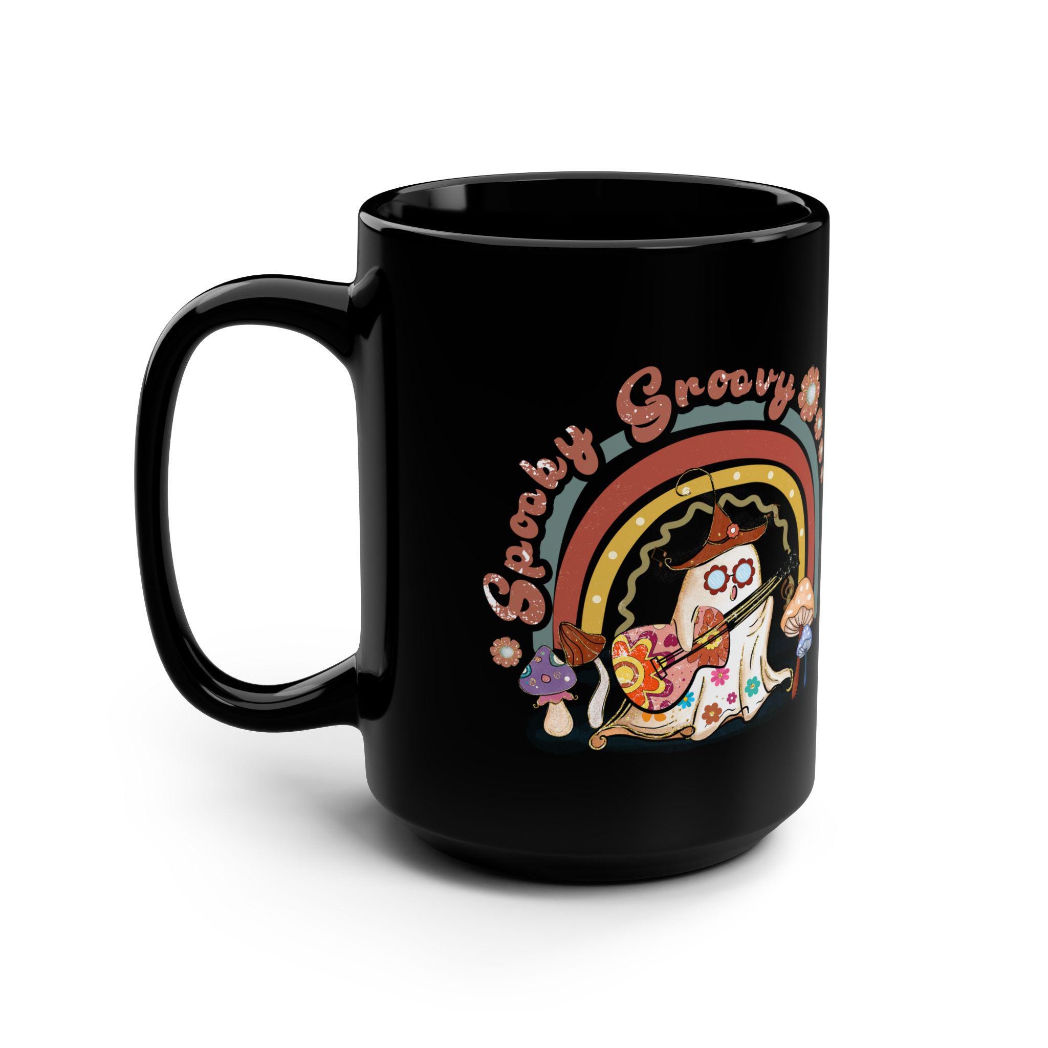 Cute, Houmous, Spooky Ghost, 15oz Black mug. These black mugs come in one size – 15oz (0.44l) – plenty for morning caffeine boosts and hot cups of tea on a rainy day. They're easy to grip and feel sturdy thanks to the C-shaped handle. Add more personality by decorating them with your original designs. They'll be printed on the black ceramic material in picture-perfect quality with a glossy finish.