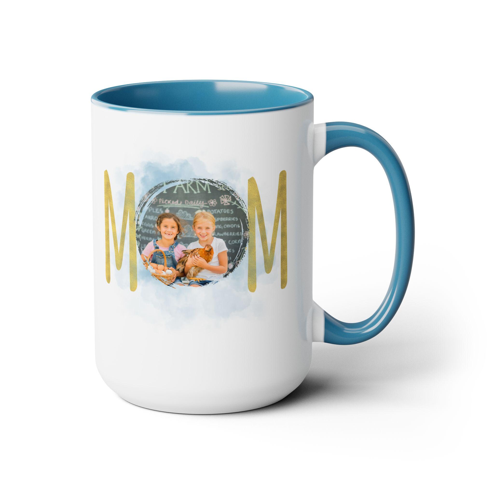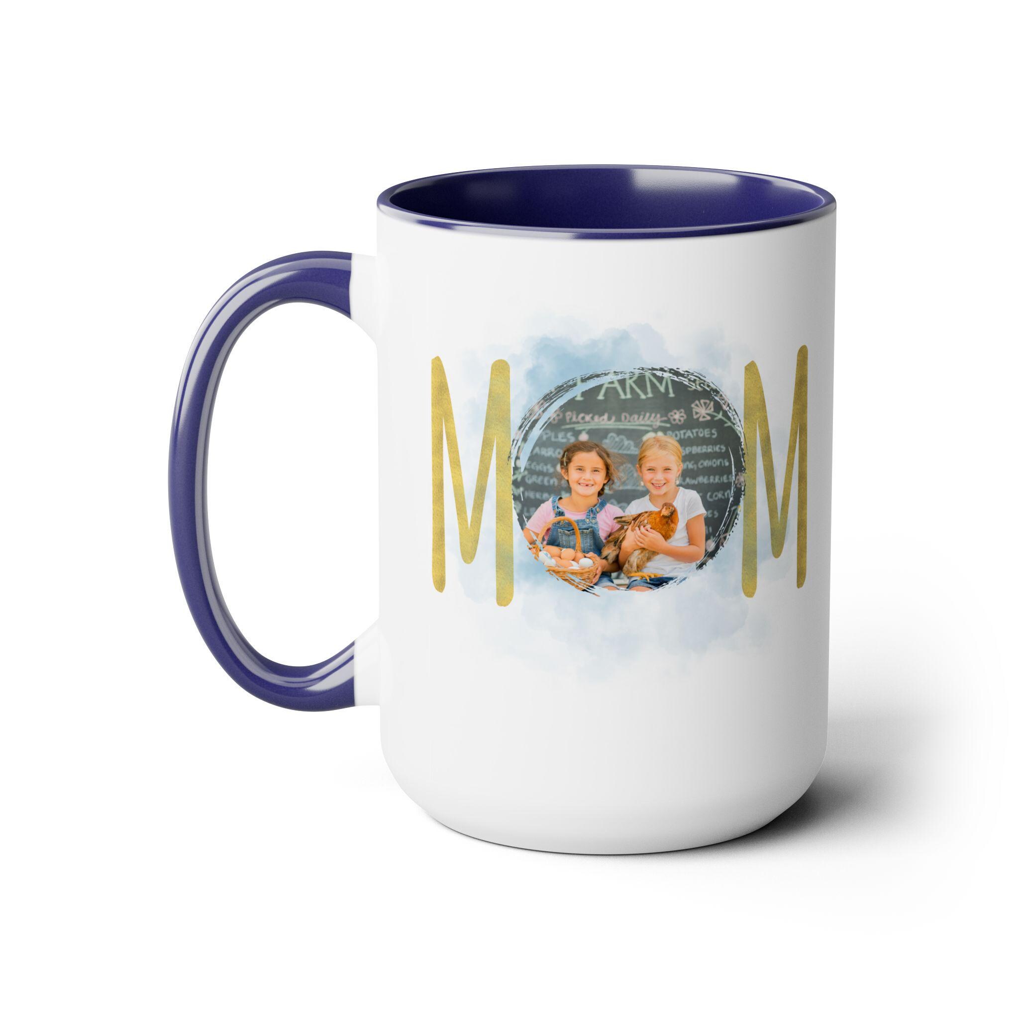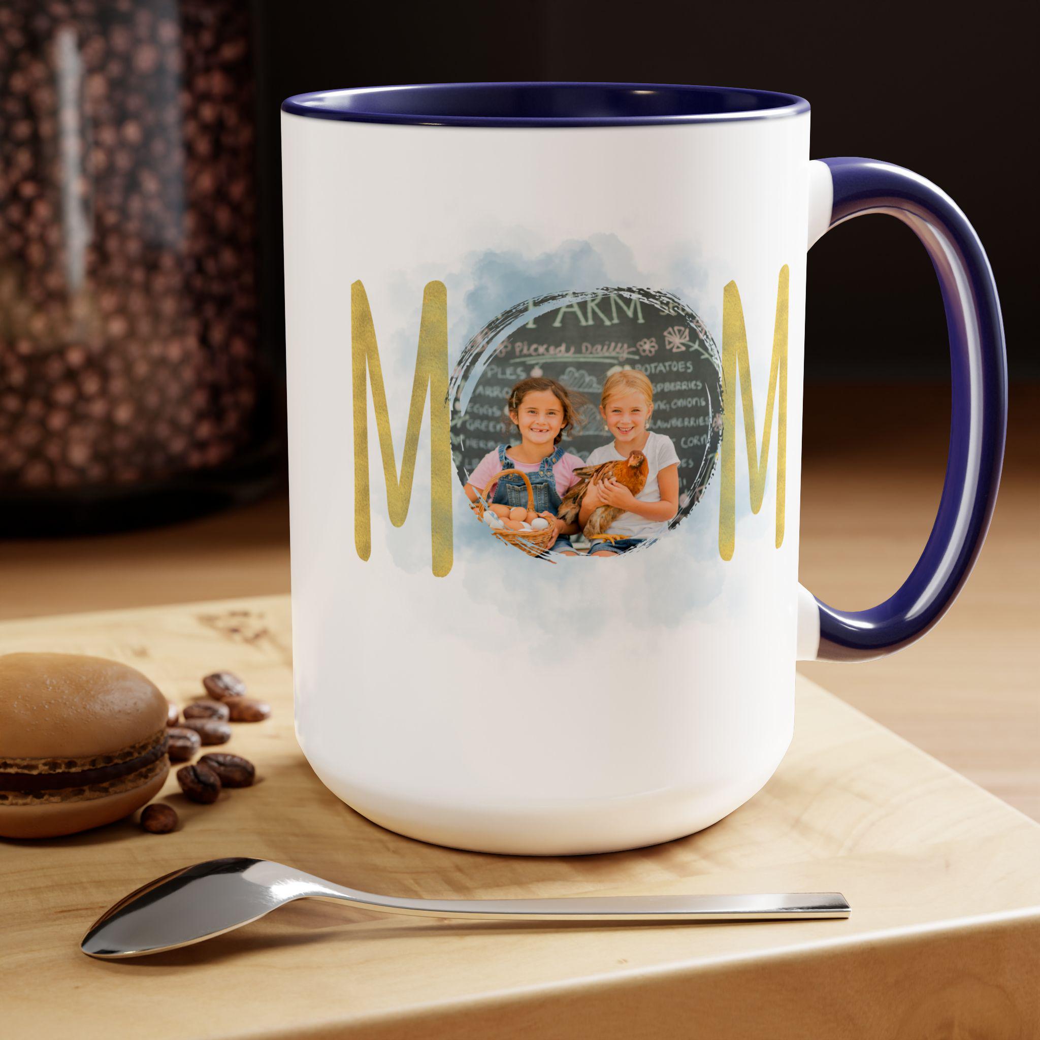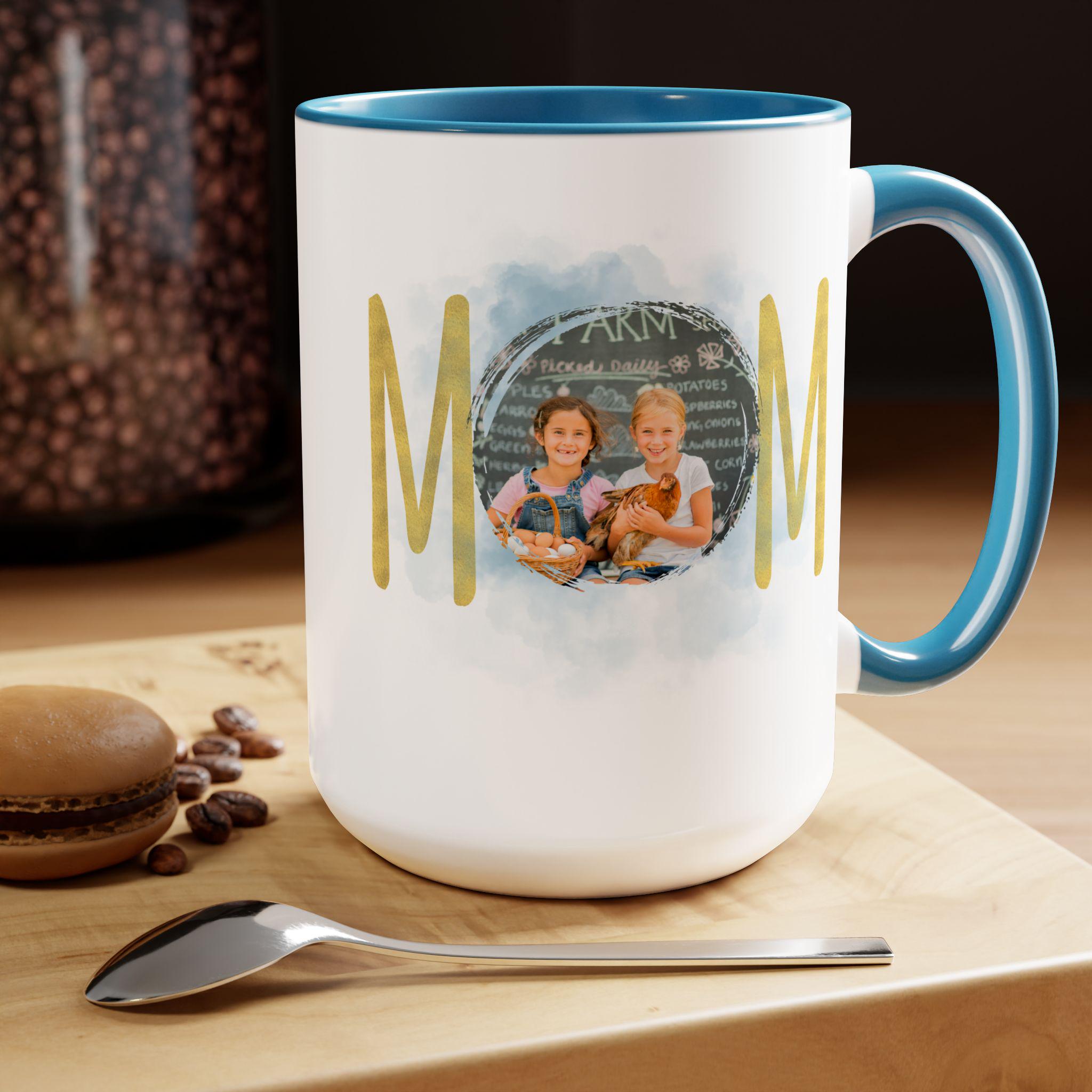 Personalized Mom mug, Birthday gift, Christmas gift, Two-Tone Coffee Mugs, 15oz. Here to bring big gulps of coffee and style, these two-tone coffee mugs help people around the world start the day just right. Choose between 5 different color options to best complement your designs. Each mug comes with a colored handle, a colored interior, and a classy, glossy finish so that your mugs become an instant favorite.