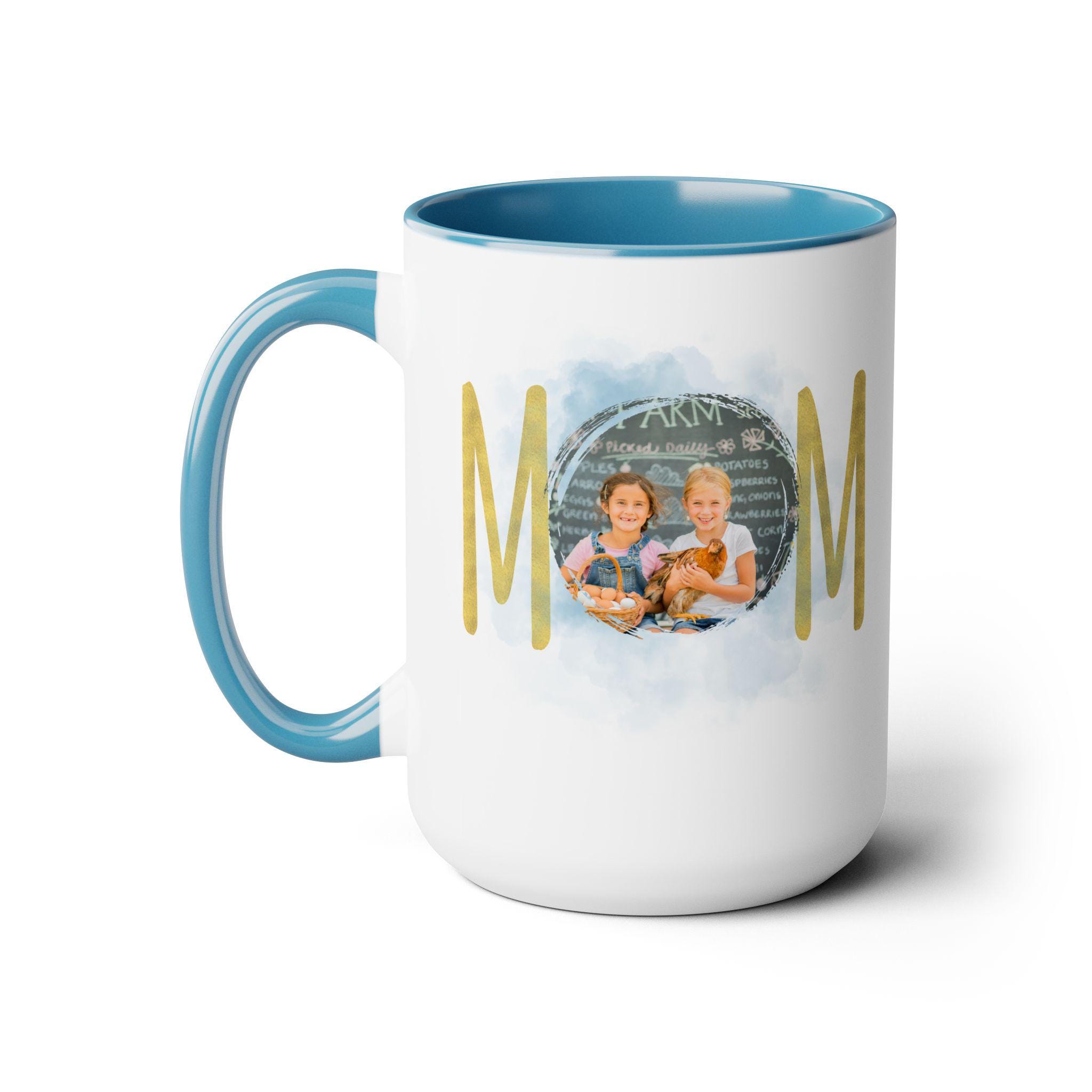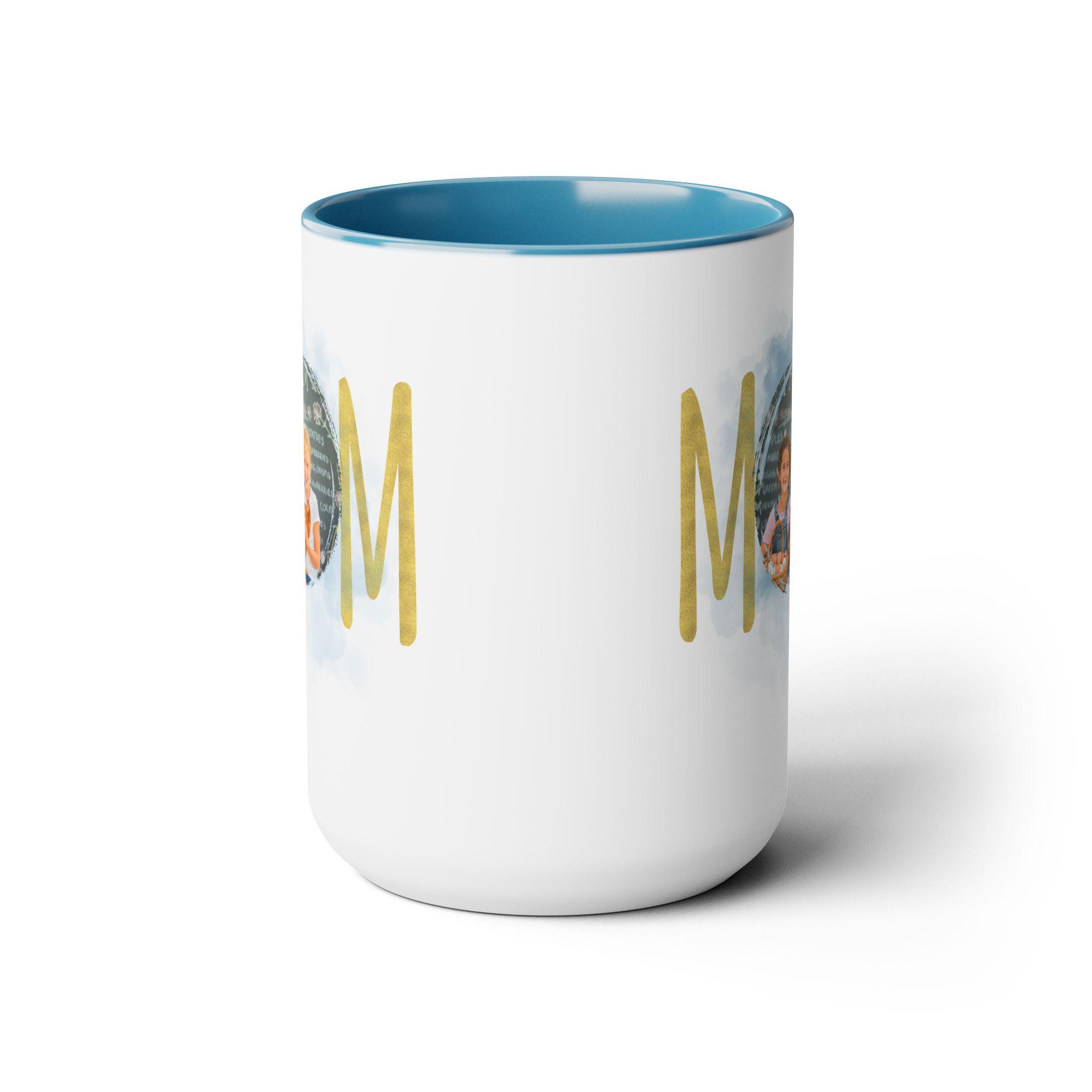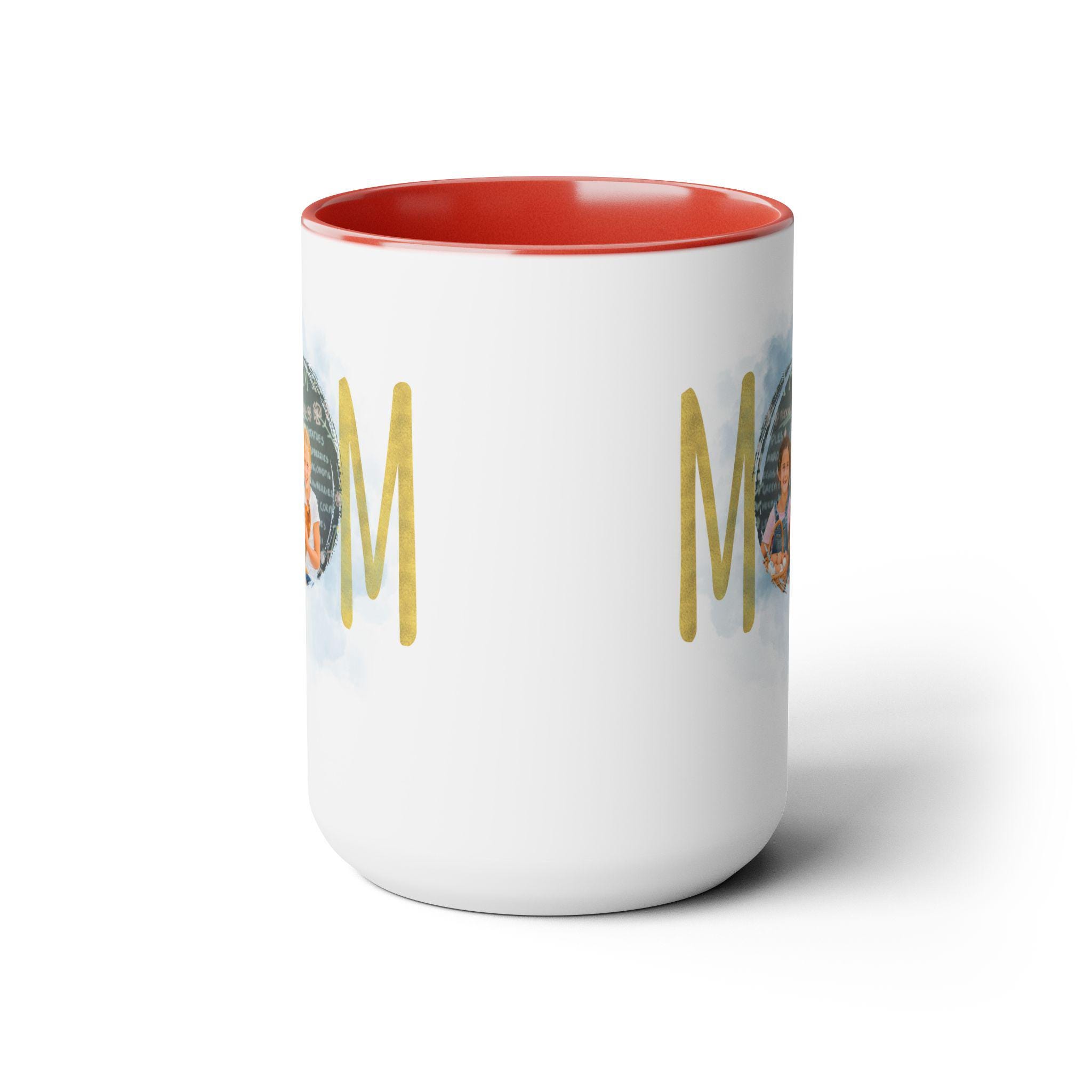 Personalized Mom mug, Birthday gift, Christmas gift, Two-Tone Coffee Mugs, 15oz. Here to bring big gulps of coffee and style, these two-tone coffee mugs help people around the world start the day just right. Choose between 5 different color options to best complement your designs. Each mug comes with a colored handle, a colored interior, and a classy, glossy finish so that your mugs become an instant favorite.