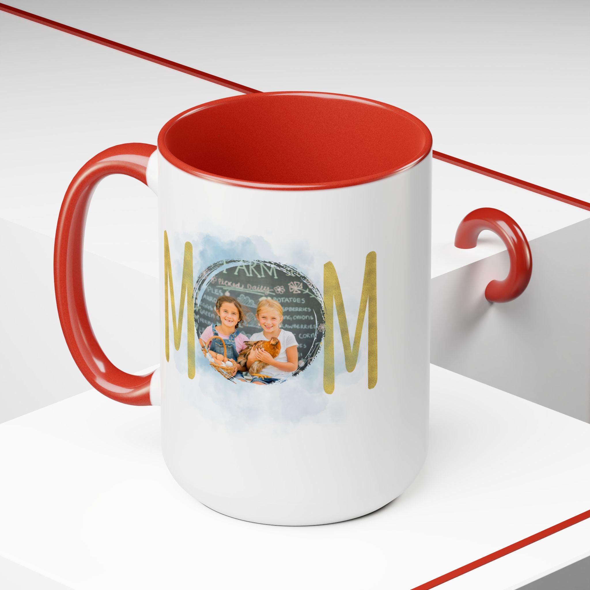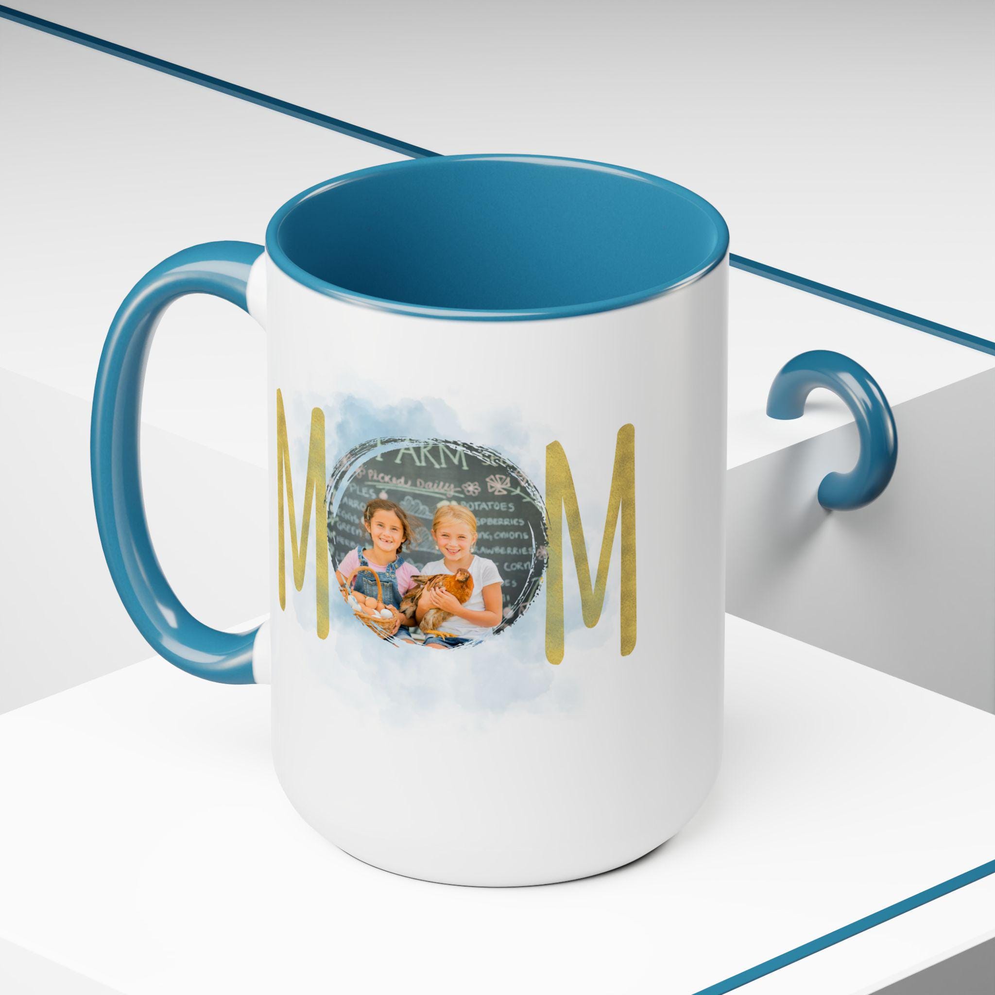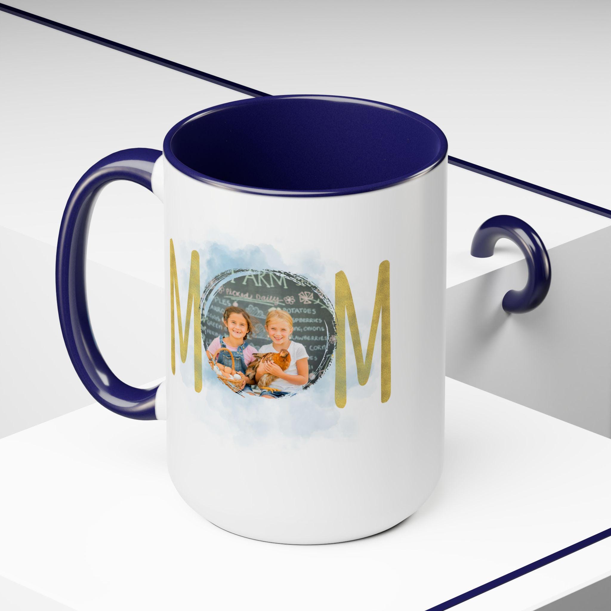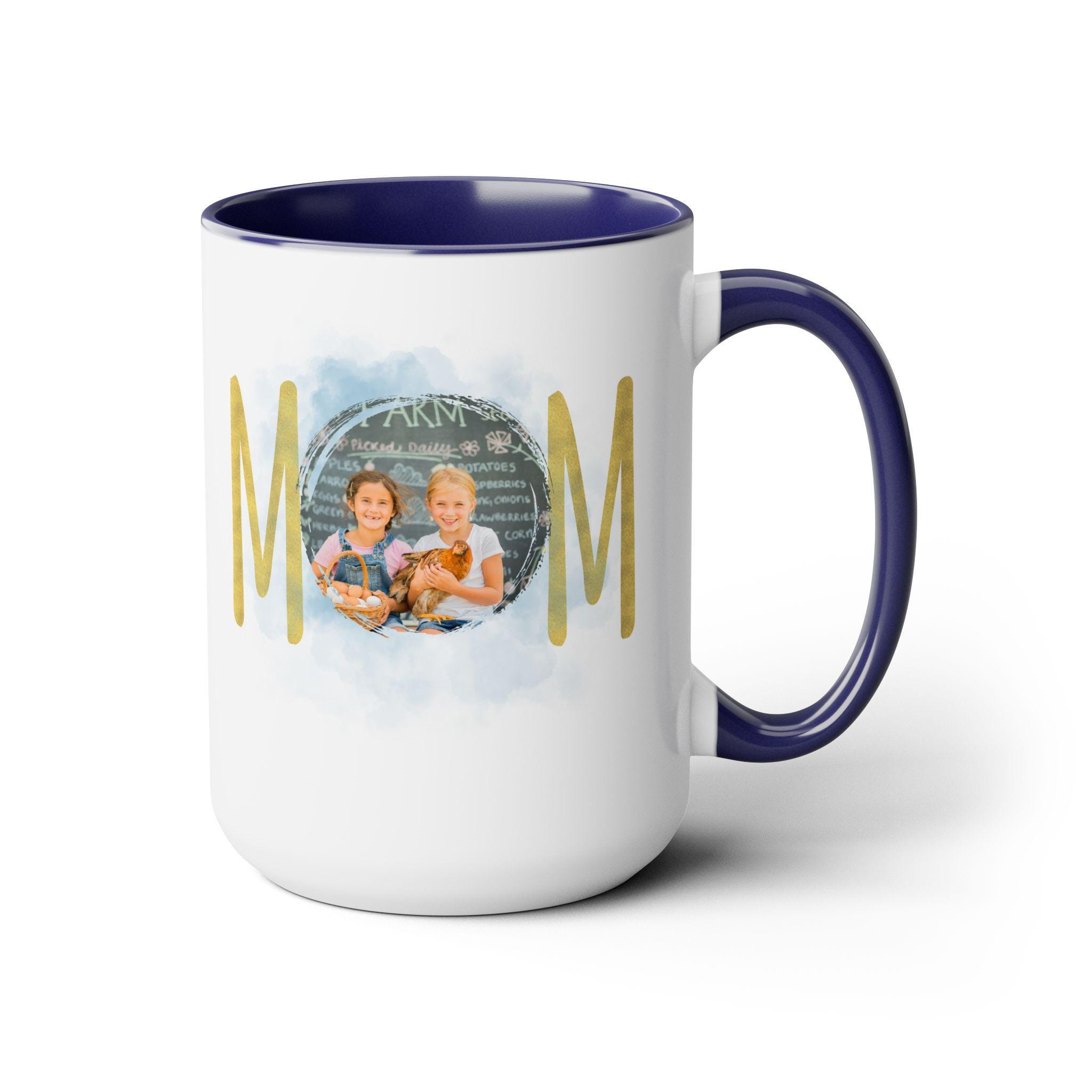 Personalized Mom mug, Birthday gift, Christmas gift, Two-Tone Coffee Mugs, 15oz. Here to bring big gulps of coffee and style, these two-tone coffee mugs help people around the world start the day just right. Choose between 5 different color options to best complement your designs. Each mug comes with a colored handle, a colored interior, and a classy, glossy finish so that your mugs become an instant favorite.