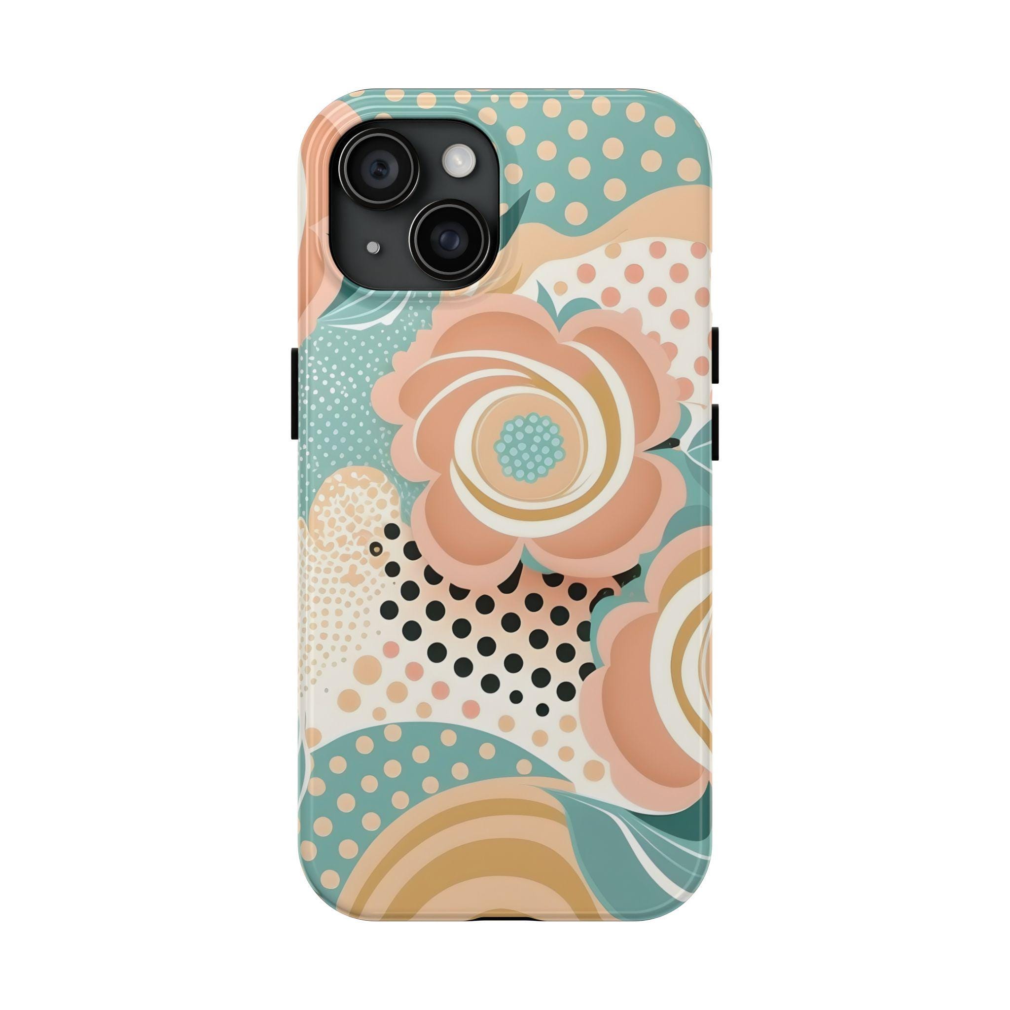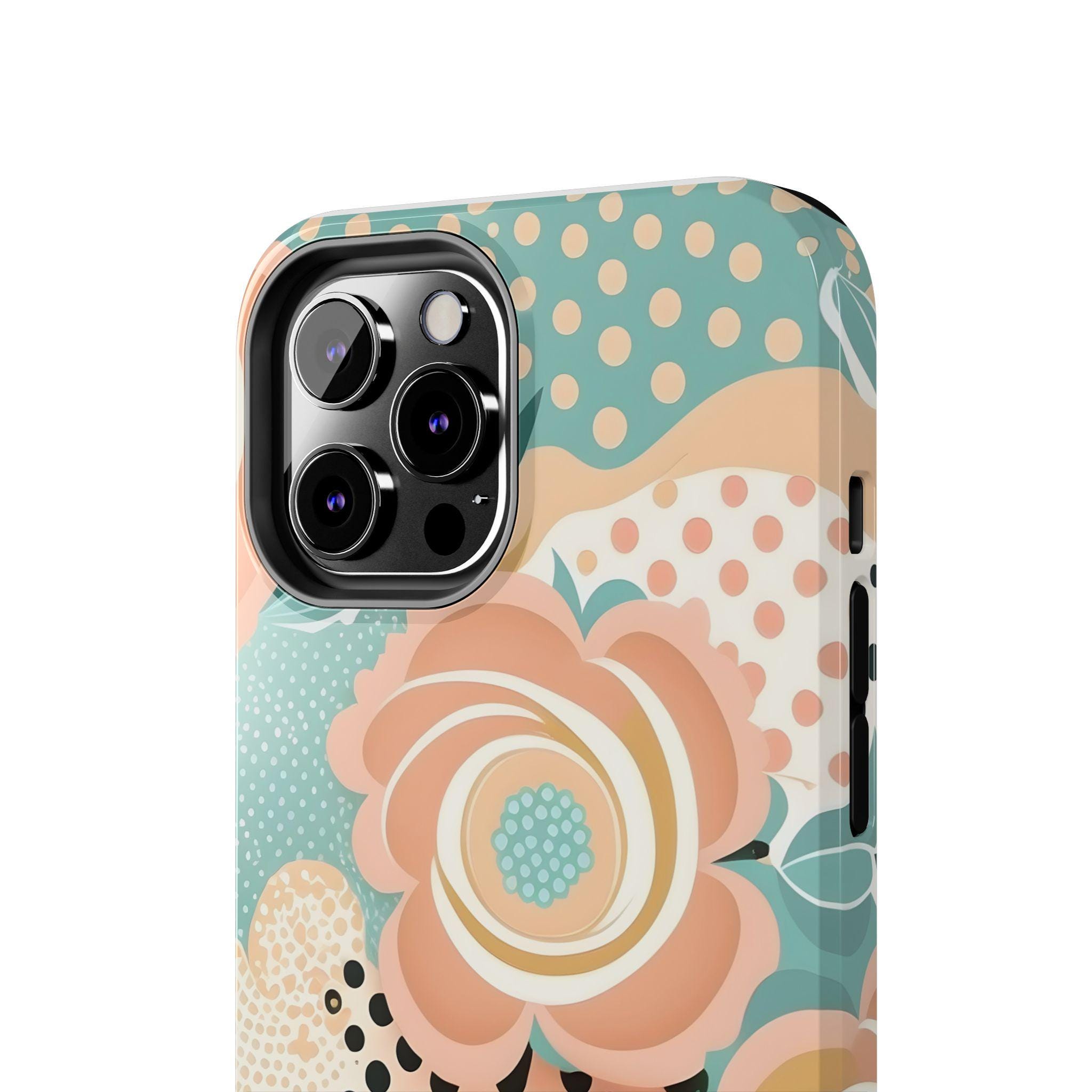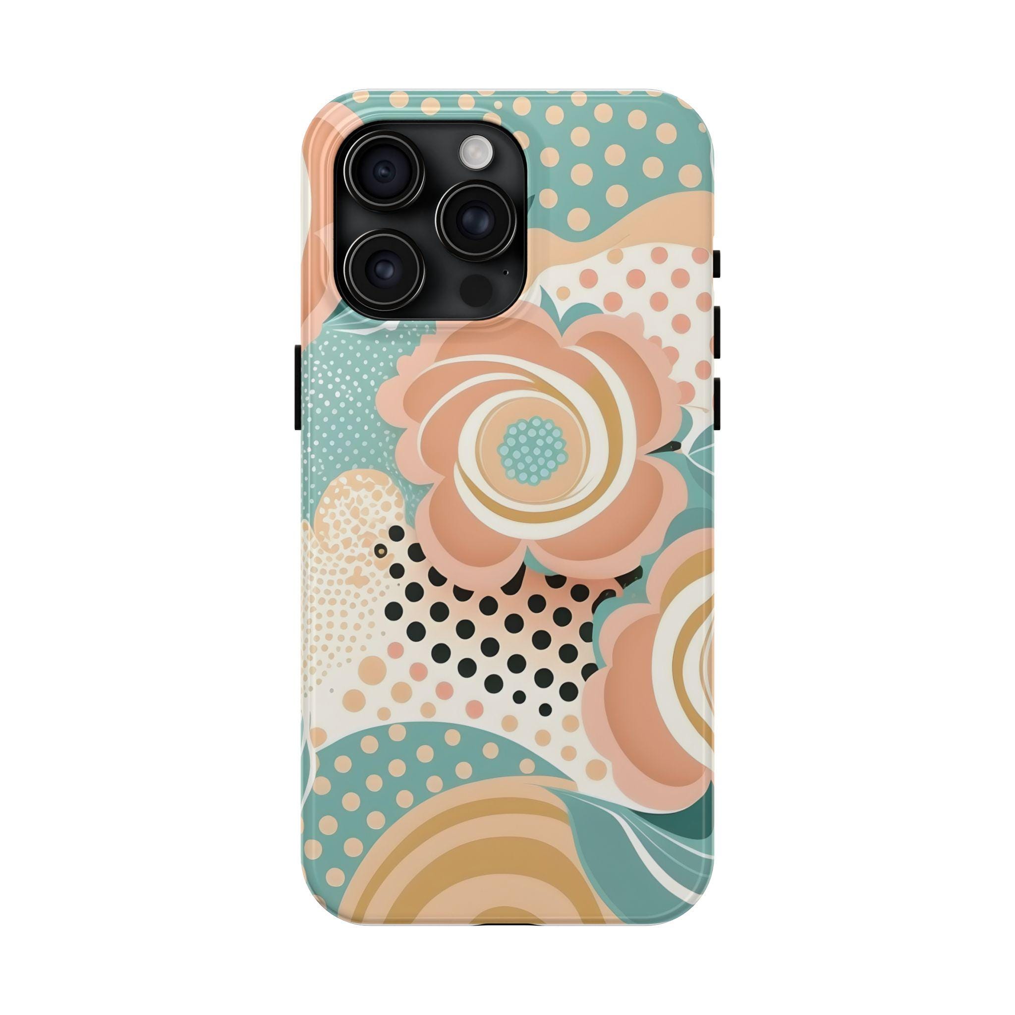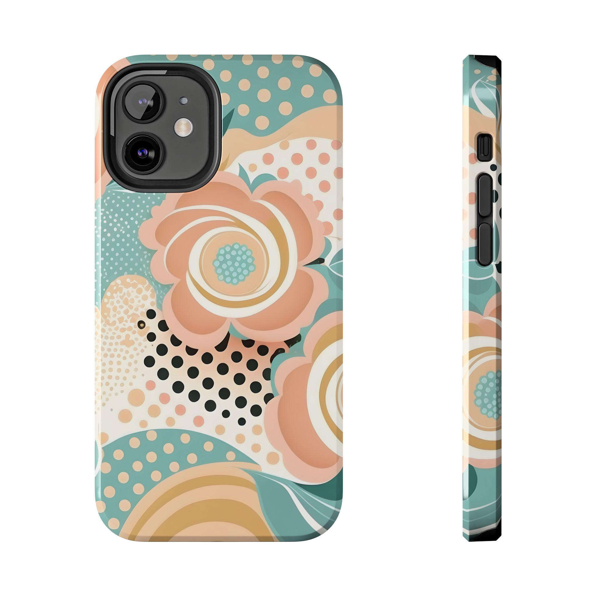 durable phone case, Retro, Circles and Flowers Tough Phone Cases. Protect your phone in custom style with this tough phone case. This lightweight phone case is impact resistant and comes with the perfect surface to print all your ideas in vivid detail as well as crisp color. Compatible with iPhone 7, 8, X, 11, 12, 13, 14 & more – check our available sizes.