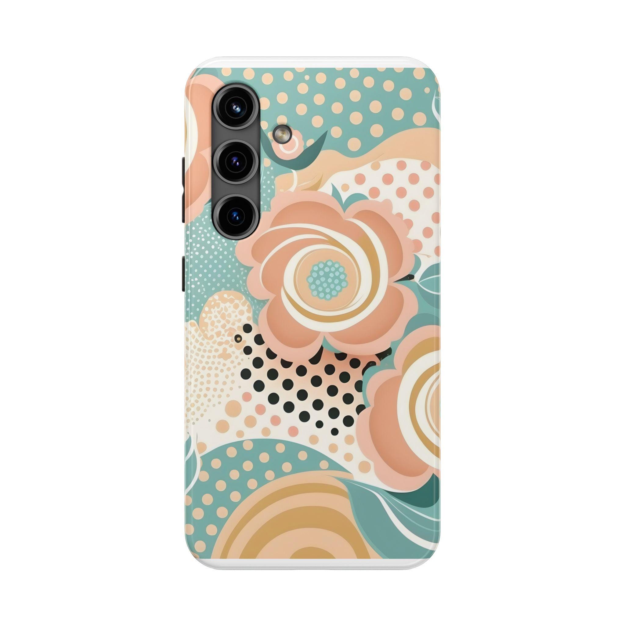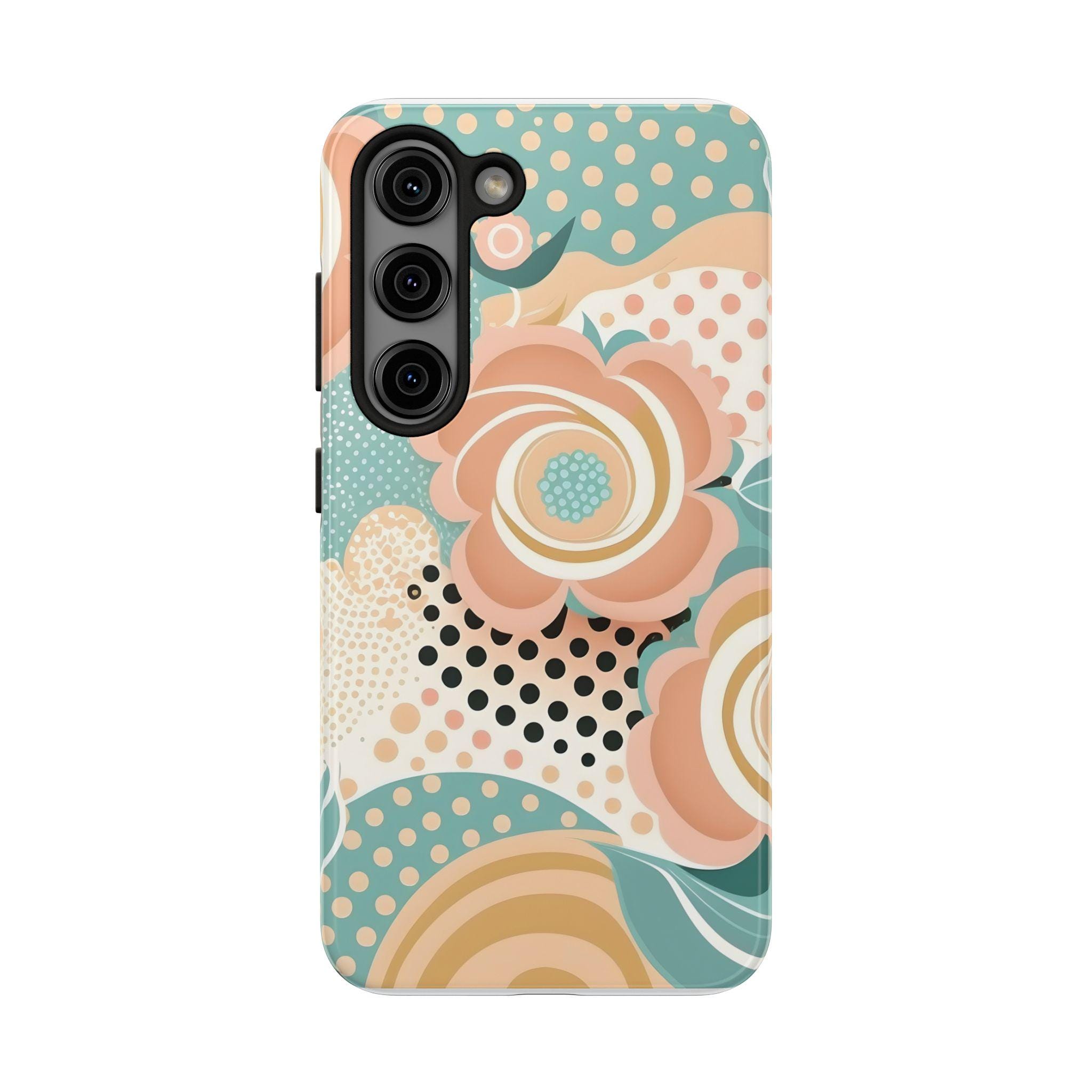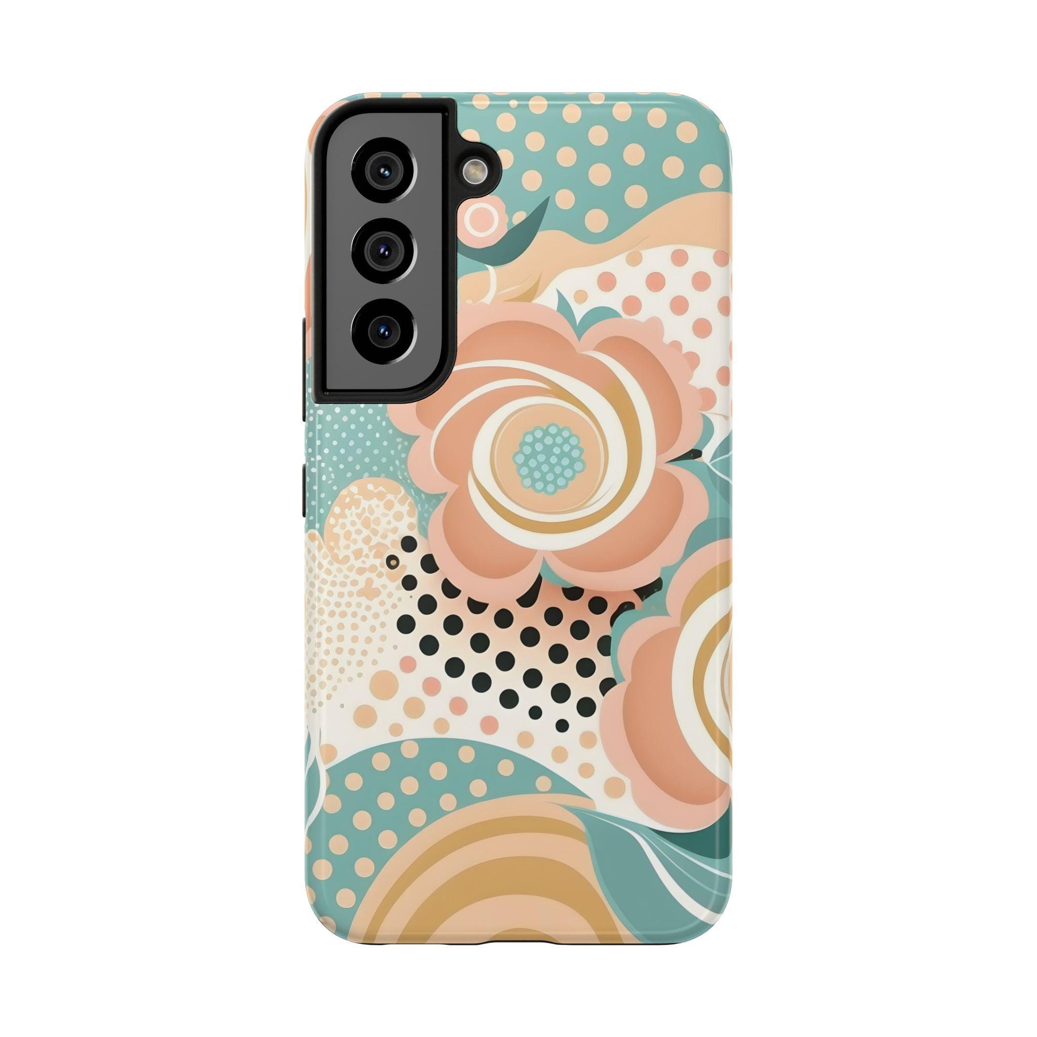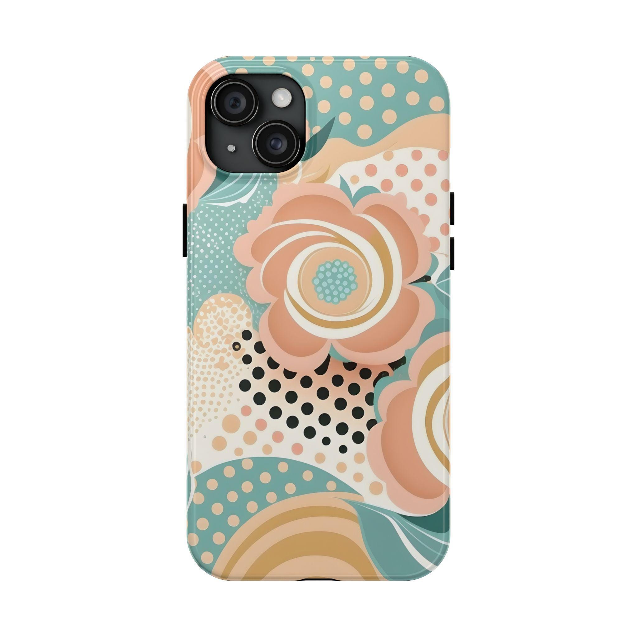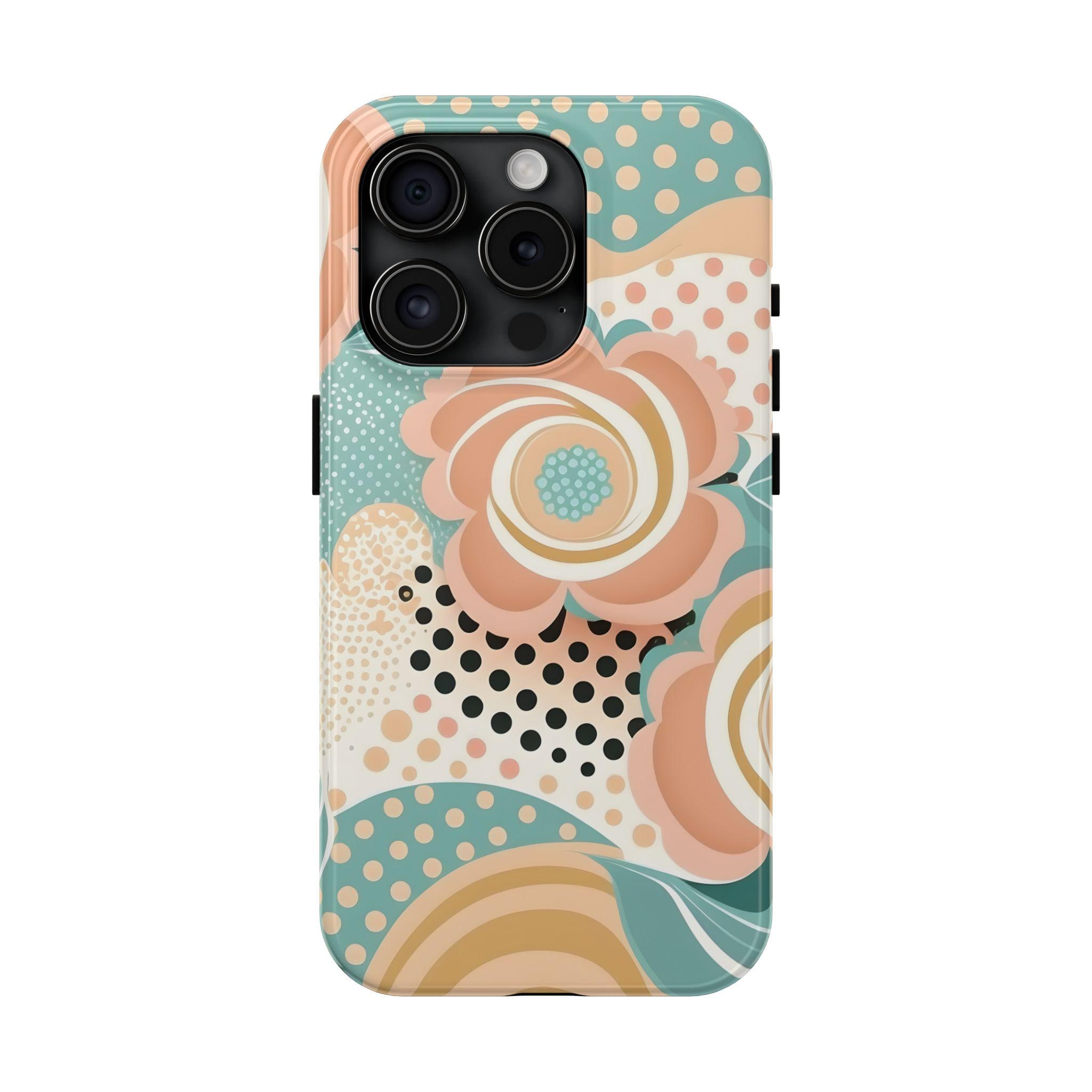durable phone case, Retro, Circles and Flowers Tough Phone Cases. Protect your phone in custom style with this tough phone case. This lightweight phone case is impact resistant and comes with the perfect surface to print all your ideas in vivid detail as well as crisp color. Compatible with iPhone 7, 8, X, 11, 12, 13, 14 & more – check our available sizes.