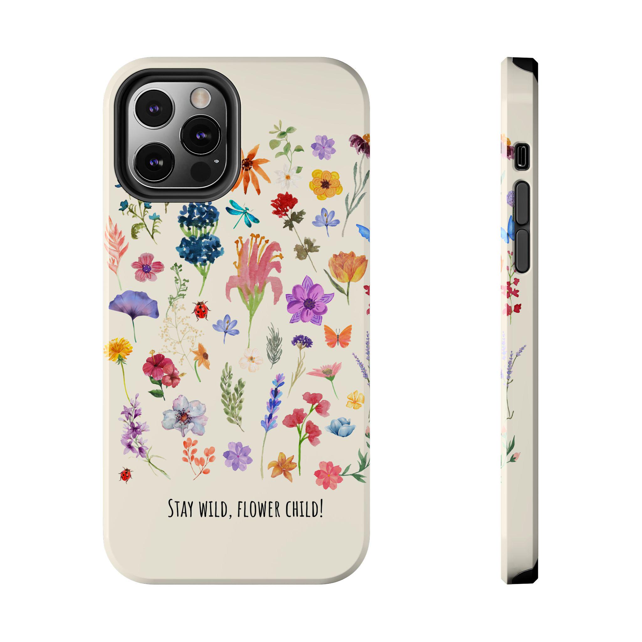 Wildflowers, Stay Wild flower child, Tough Phone Cases. Protect your phone in custom style with this tough phone case. This lightweight phone case is impact resistant and comes with the perfect surface to print all your ideas in vivid detail as well as crisp color. Compatible with iPhone 7, 8, X, 11, 12, 13, 14 & more – check our available sizes.