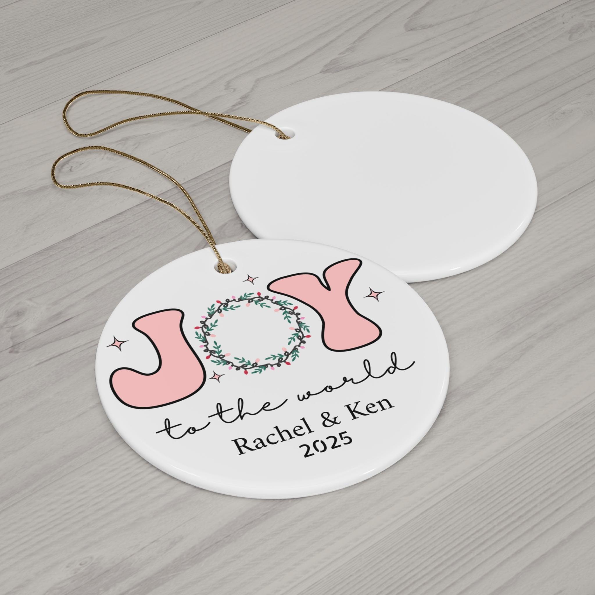 Personalized Couple Ornament - Joy to the world Couple 2023 Personalized Christmas Ornament Pink Couple Christmas Ornament Ceramic Ornament