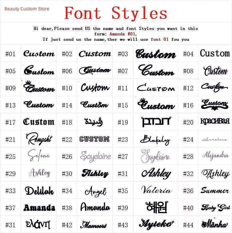 • Simply use the 'PERSONALIZATION BOX' to let us know the NAME and the FONT NUMBER that you would like. (Any font is available, not just our featured fonts)